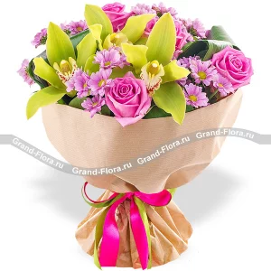 Цветочная элегантность - букет-новинка с орхидеей, розами и альстромериямиот 5 371 руб. 5 522 руб.Купить