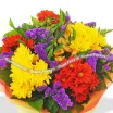 Стандартный: хризантема желтая кустовая - 2 шт., хризантема кустовая оранжевая - 2 шт., альстромерия оранжевая - 2 шт., статица - 4 шт., фетр желто - оранжевый, ваза.