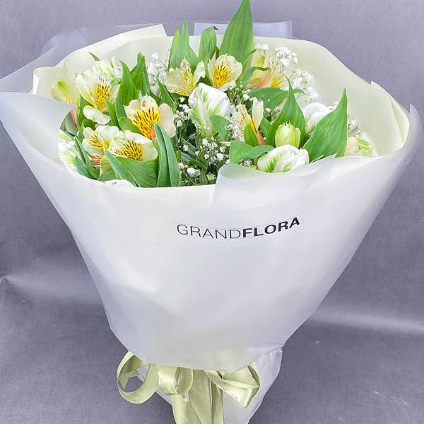 Светлана / г. Иваново г. / 10.08.2023Оценка букета:Букет был доставлен во время и упакован очень аккуратно. Я была очень довольна его внешним видом, белые альстромерии создали чистый и элегантный образ. Я обязательно буду заказывать в этой компании цветы снова.